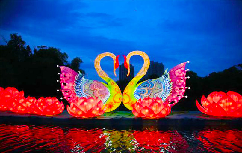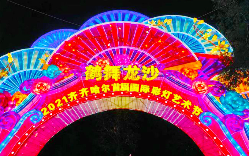 鹤舞龙沙“2021齐齐哈尔首届国际彩灯艺术节”7月10日正式面向整体市民亮灯,共有53组大型彩灯及10万余盏灯火秀将夜幕下的龙沙公园装点得流光溢彩。