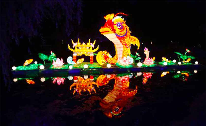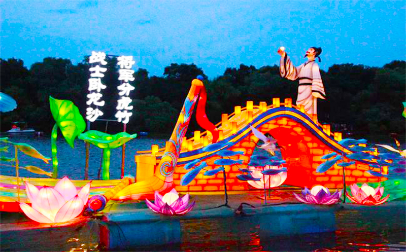 此次彩灯艺术节以鹤城名片、时代潮流、民俗文化等元素打造狂欢盛宴、鹤舞龙沙、网红互动、盛世华章四大主题灯区,一切用于展示的花灯均是出自全国闻名的花灯之乡自贡市。